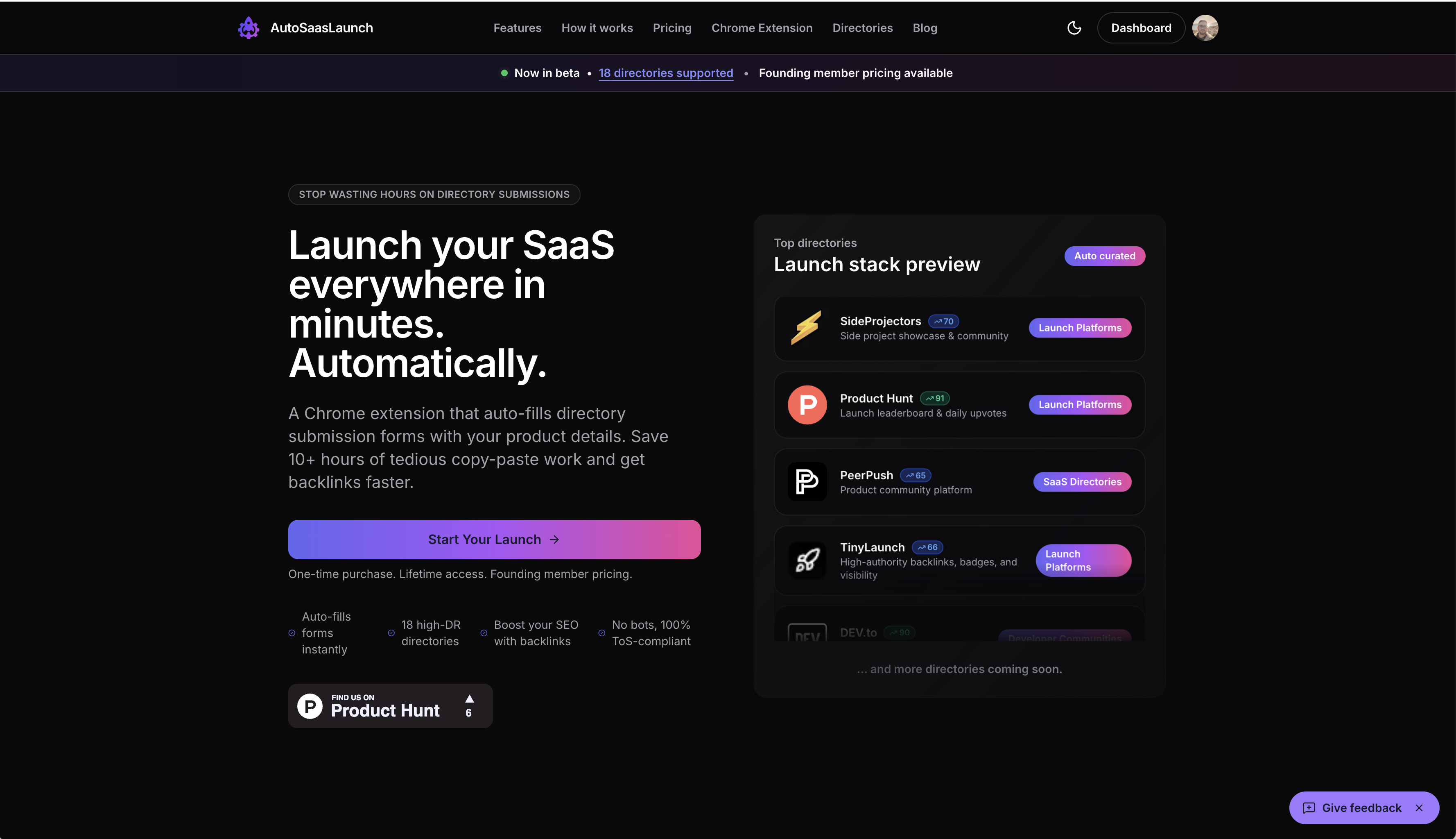 Chrome extension that automates submissions to product directories — turning a tedious launch checklist into a one-click workflow.