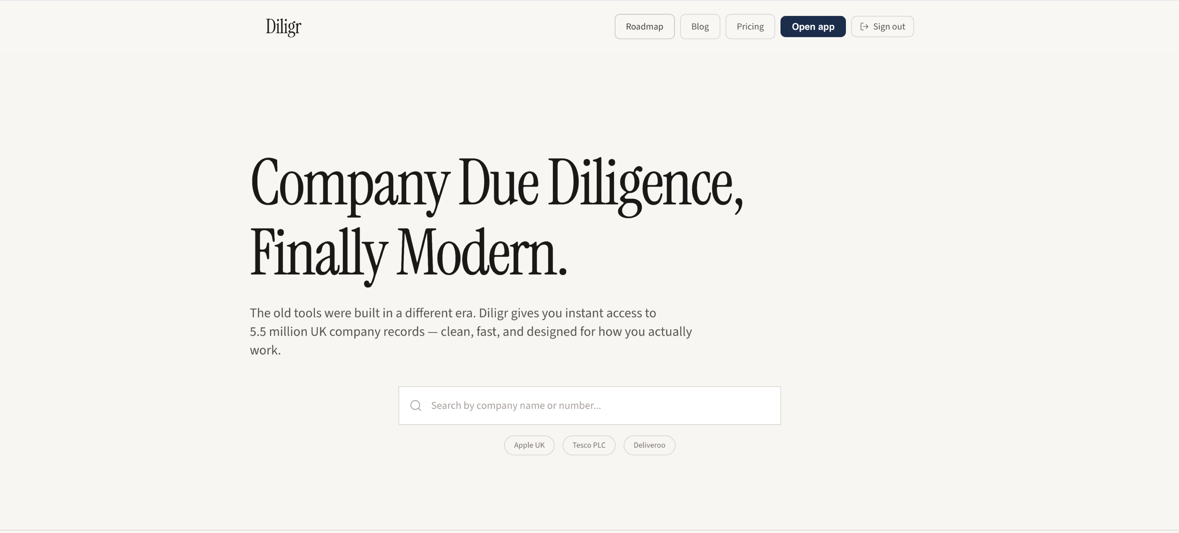 Diligr gives you instant access to 5.5 million UK company records — clean, fast, and designed for how you actually work.