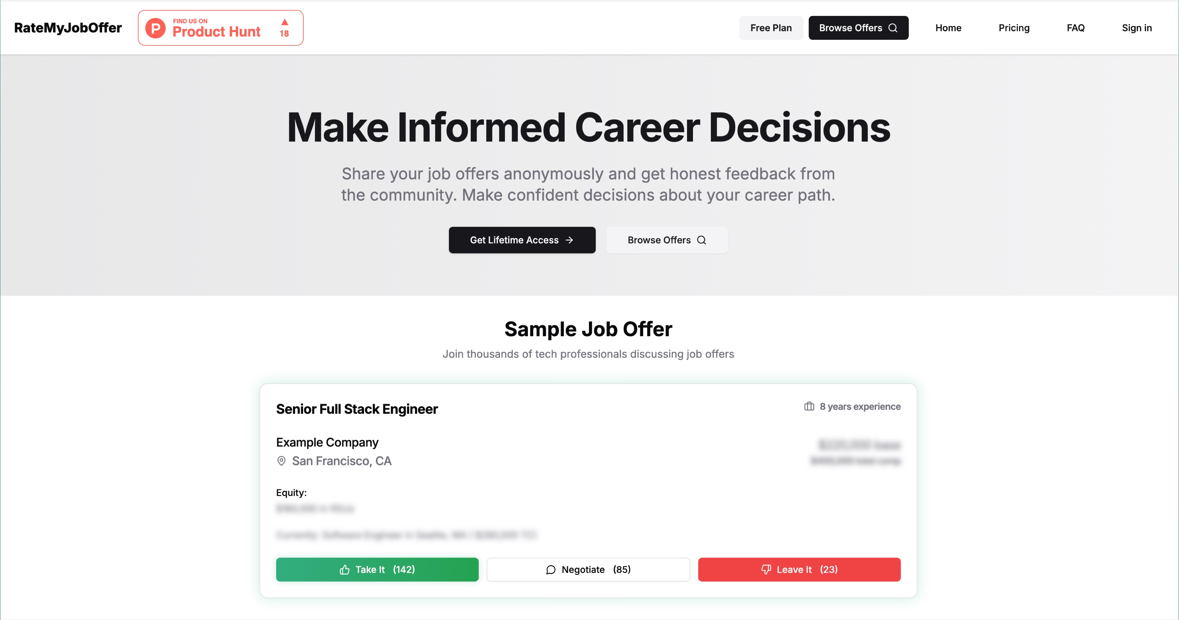 A community platform that helps engineers benchmark job offers against real market data — salary, equity, and quality of life signals.
